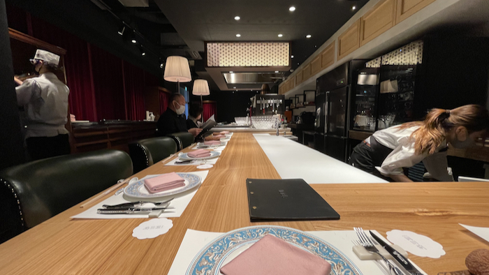 タイミングをずらすことで、すべてのお料理を岡田シェフが目の前で調理するという、すごいスタイルが可能となっている。