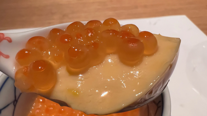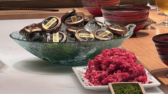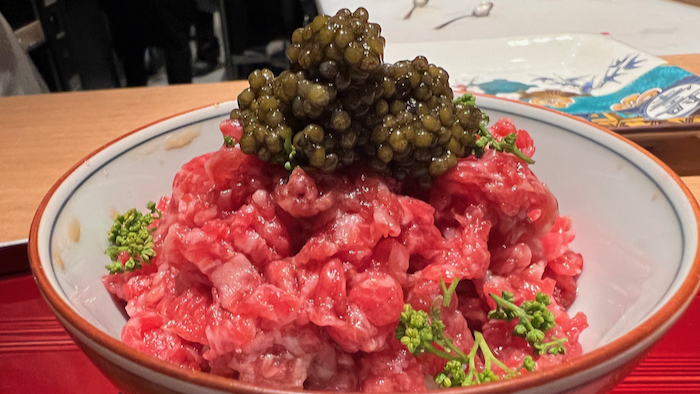 ▲ ユッケとキャビア、下にはアツアツの炊き立てごはんという組み合わせ。