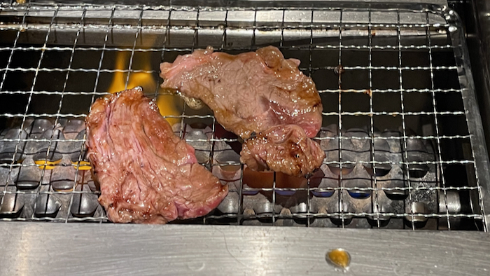 肉質も最初のハラミとミスジよりは落ちる感じ。
