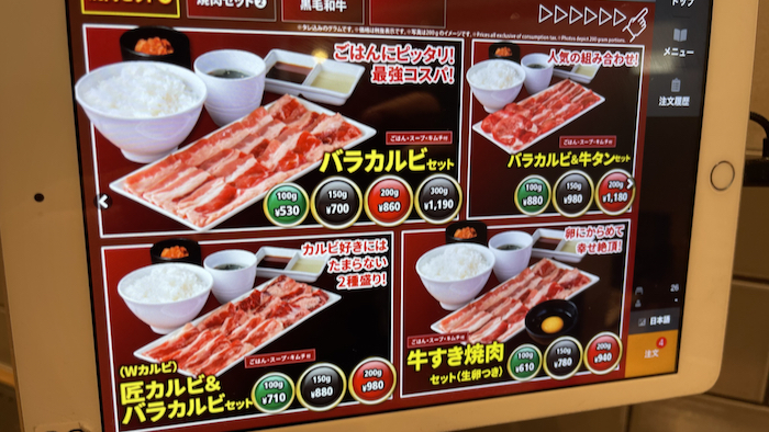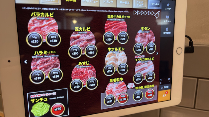 ▲ ハラミが100gで520円、匠カルビが100gで480円というのは確かに安い。