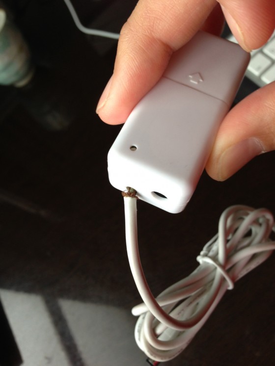 見てみると、上の写真のとおり、ケーブルが断線して、HyperJuiceが充電できなくなってしまったのだ。