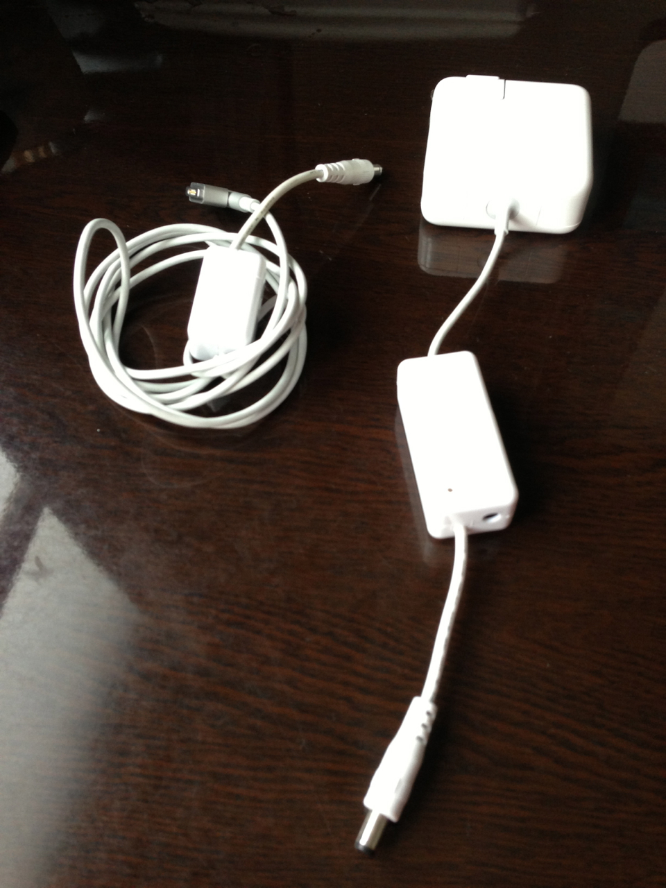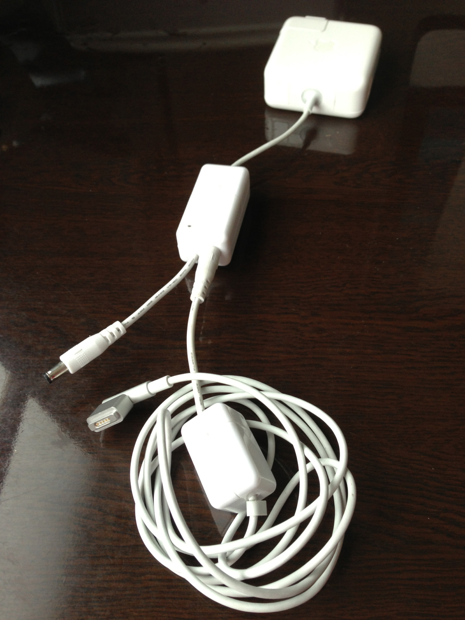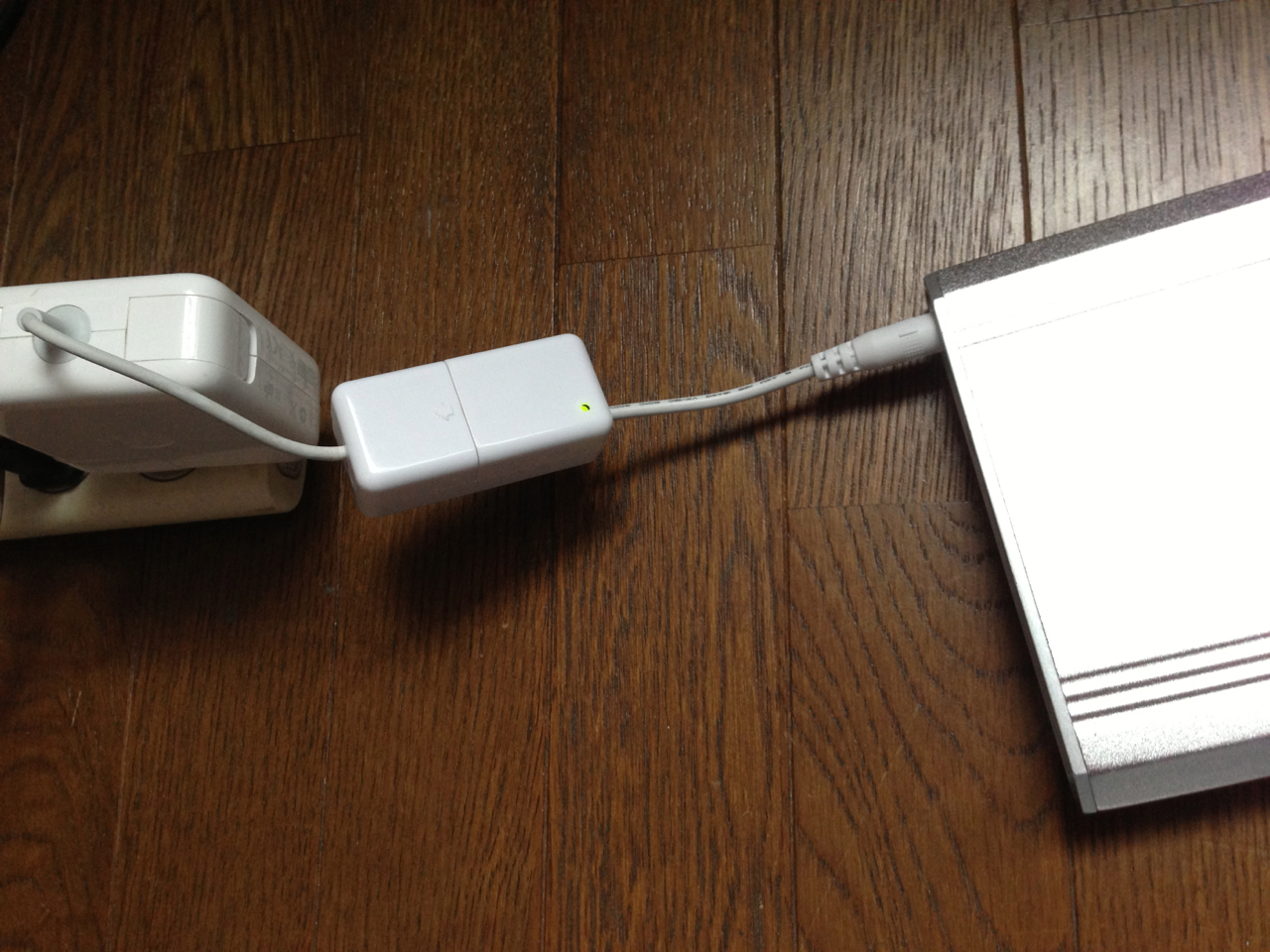 2つの別々のケーブルだが、このように接続することで、普通にAC電源にMBAをつなぐのに使えるのだ。