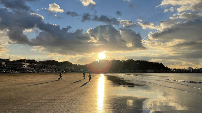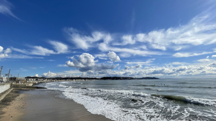 ▲ 僕が住む鎌倉の由比ヶ浜から材木座海岸に向けて。