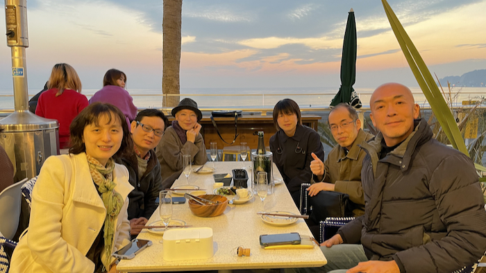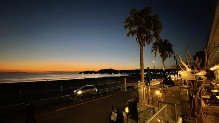 ▲ 同じく材木座テラスのザイモクザシーズンズテーブルからの夕暮れ時。
