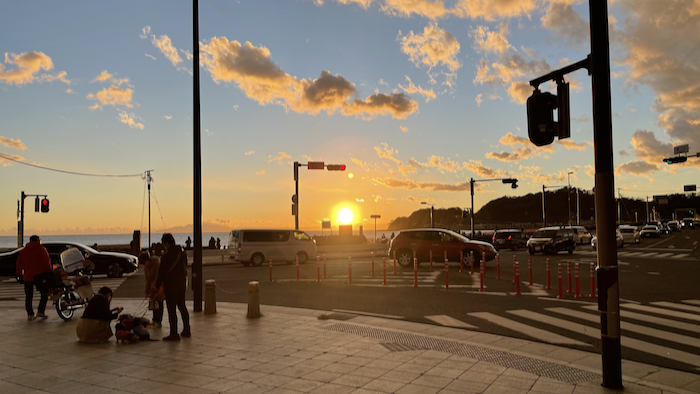 ▲ 鎌倉の材木座海岸で日の出のタイミング。