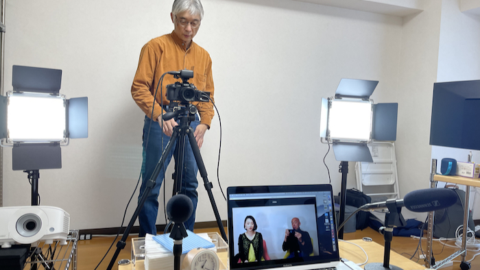 ▲ 今回も菊地健介さんにサポートいただき、リアル開催のセミナーを同時にZoom配信しつつ、さらに後日視聴用のデータも収録していきます。