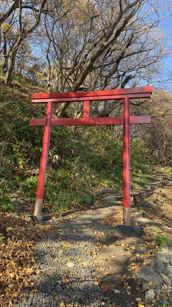 ▲ 鳥居があり、小高い丘へと参道が続いている。